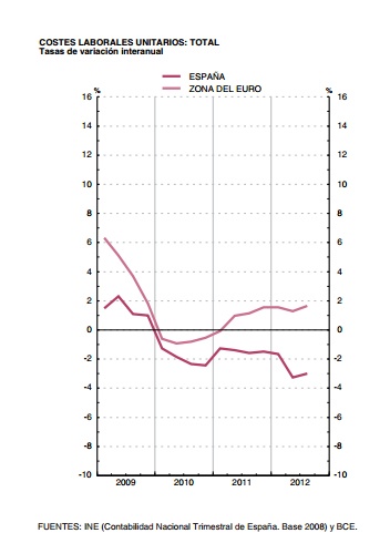 Estas medidas políticas adoptadas por nuestros gobernantes han sido las más agresivas de las adoptadas por el resto de los países de la zona euro, mejorando nuestro diferencial respecto a los mismos, pero a costa exclusivamente del recorte de los sueldos de los asalariados.