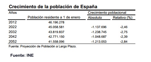 Menor número de residentes adultos supone menor demanda de primeras viviendas, también menor demanda de superficies en el resto de los subsectores (oficinas, comercial, industrial, etc.), por lo que se realza la importancia de los stocks inmobiliarios.
