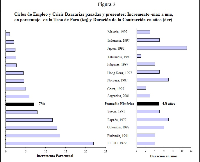 Hace unos meses Carmen Reinhart y Rogoff, analistas de reputado prestigio entre gestores de fondos internacionales, publicaron un estudio sobre las crisis sufridas en los principales países de la CEOE, entre 1899 y 2001. Independientemente de sus interesantes conclusiones, sobre algunas de las cuales ya he escrito, en dicho trabajo se recoge la crisis que se sufrió en España en 1977 (fruto tardío de la crisis del petróleo de 1972), que siendo menos grave, en todos los indicadores, que la que actualmente nos asola, duró hasta 1985.