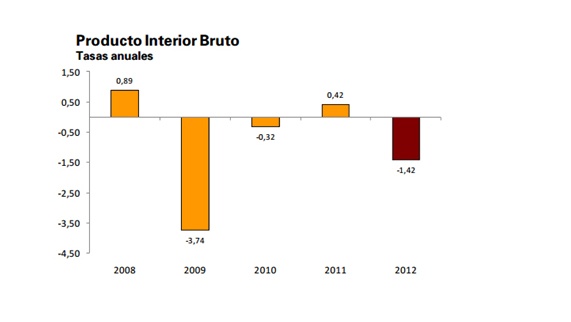 Como consecuencia de esta actualización, el crecimiento en volumen del Producto Interior Bruto (PIB) del año 2012 se ha revisado dos décimas a la baja, del –1,4% al –1,6% mientras que el del año 2011 ha sufrido una reducción de tres décimas, del 0,4% al 0,1%. Por otra parte, la variación en volumen del PIB correspondiente al año 2009 se ha revisado una décima a la baja (–3,8% frente a –3,7%) y la de 2010 una décima al alza (–0,2% frente a –0,3%).