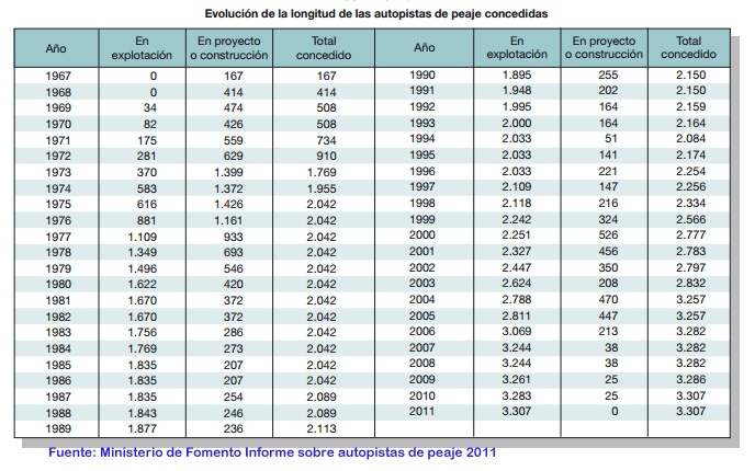La actual Ley es del 2007, y en el año 2006 ya teníamos más de 3.000 km de autopistas construidas. Desde dicha fecha (2006) solo se han construidos 126 km.