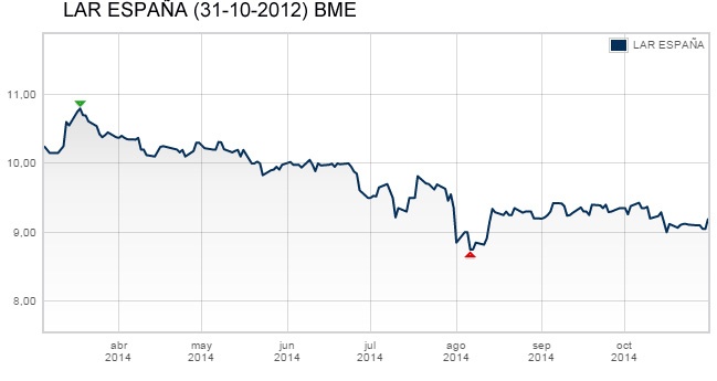 LAR ESPAÑA REAL ESTATE, SOCIMI, S.A. tiene un origen similar a la anterior, en la medida en que sus promotor fue la familia Pereda, propietarios de la Inmobiliaria LAR. Con un capital de 80.060.000,00 € cotiza en la Bolsa de Madrid, teniendo actualmente un valor de capitalización de 368.276.000,00 €.