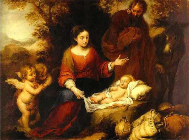 Descanso en la huida a Egipto. Bartolomé Esteban Murillo. (Sevilla, 1617-Cádiz, 1682).